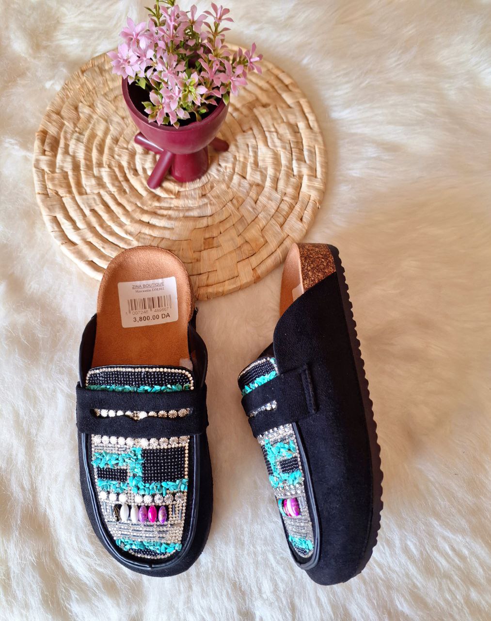 بليغة نساء باللون الأسود و الأحجار الملونة