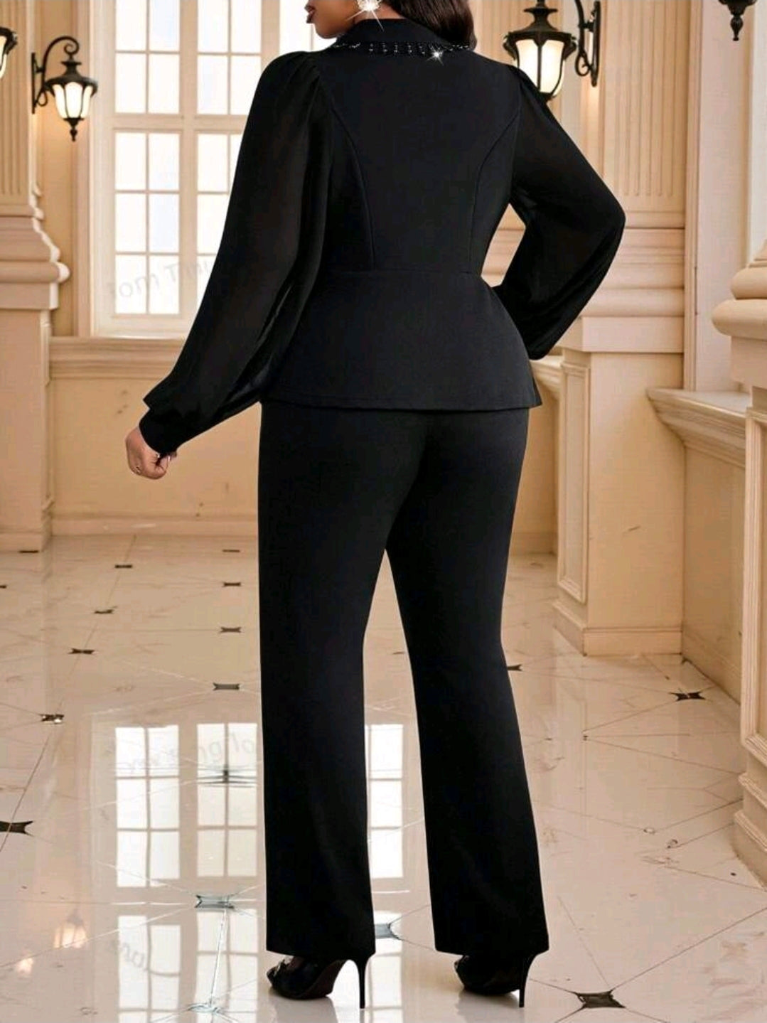 طقم جاكيت وبنطلون أنيق مزين بشراشيب، بمقاسات كبيرة