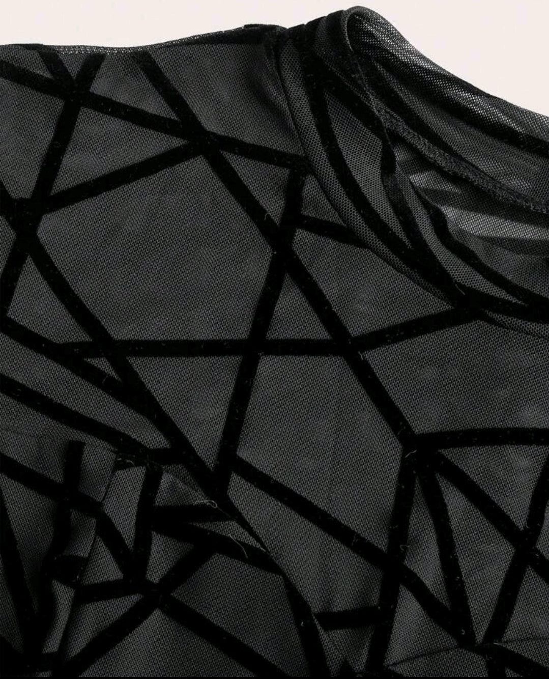 فستان أسود ضيق بأكمام طويلة من الشبك خريف/شتاء