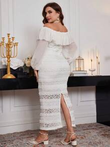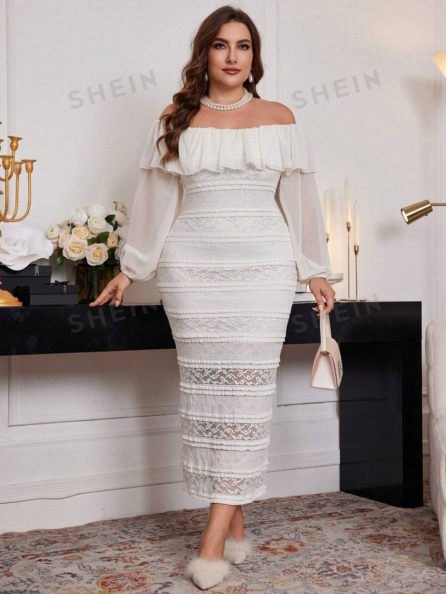 فستان حفلة أنيق وعصري مصمم خصيصًا للنساء من الحجم الكبير، يتم بتفاصيل فاخرة وأنيقة تمنحكِ إطلالة ساحرة في أي مناسبة. يجمع هذا الفستان بين الراحة والأناقة بفضل خامته المحاكّة الناعمة وتصميمه المتقن، مع أكتاف مكشوفة تضيف لمسة جريئة وفخمة، وطيّات رائعة تمنحكِ مظهرًا مميزًا.