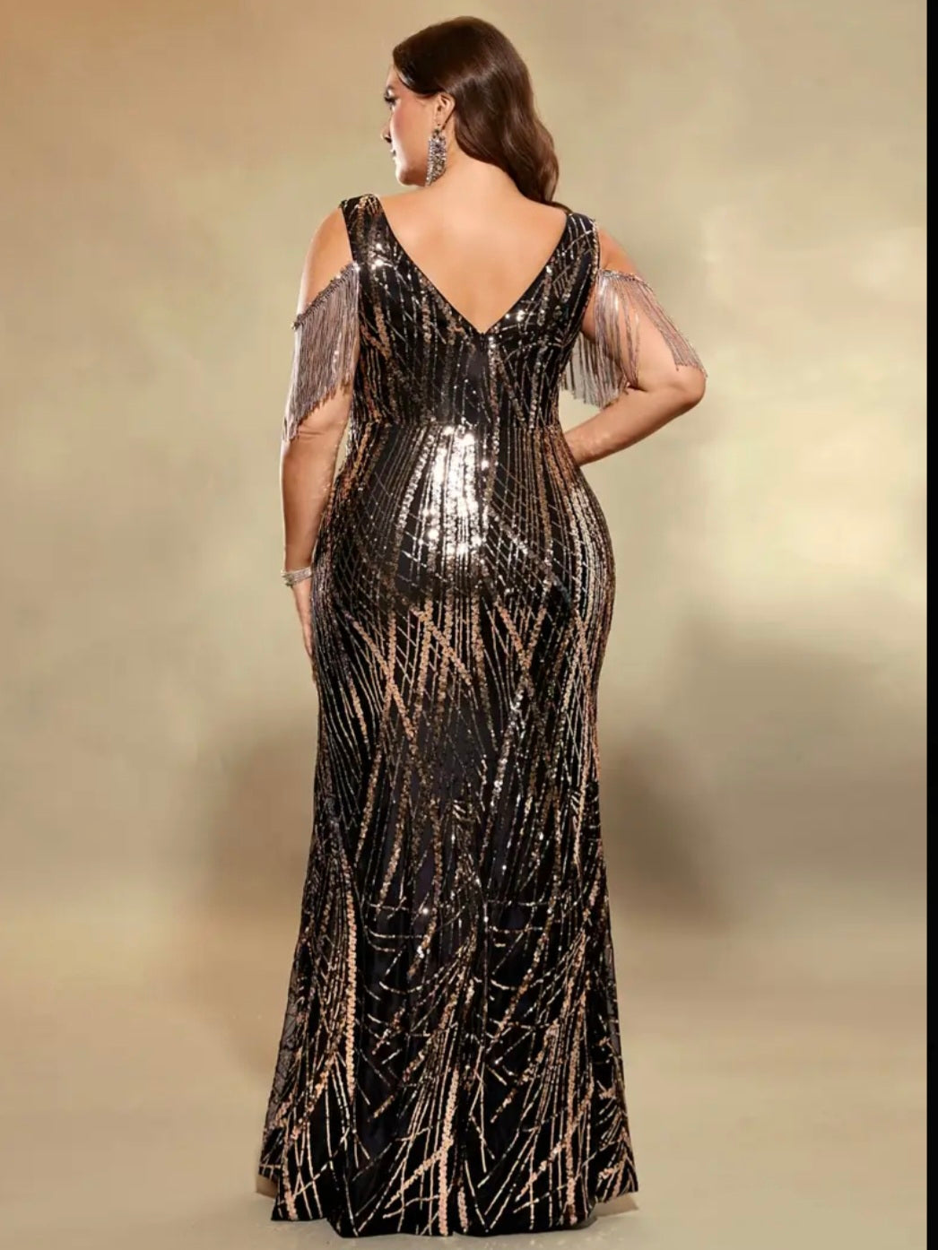 فستان ذيل السمكة مزين بالترتر بمقاس كبير