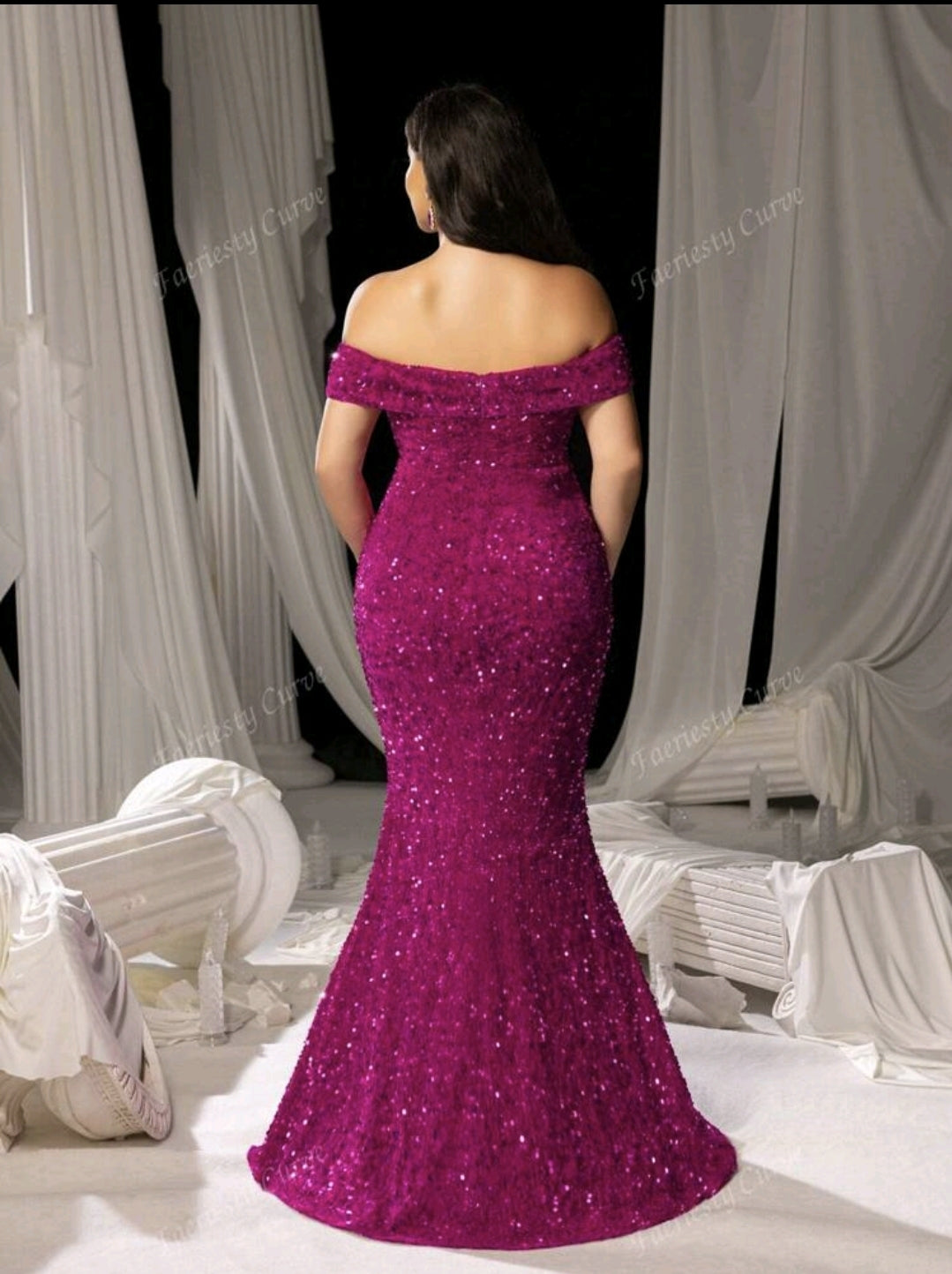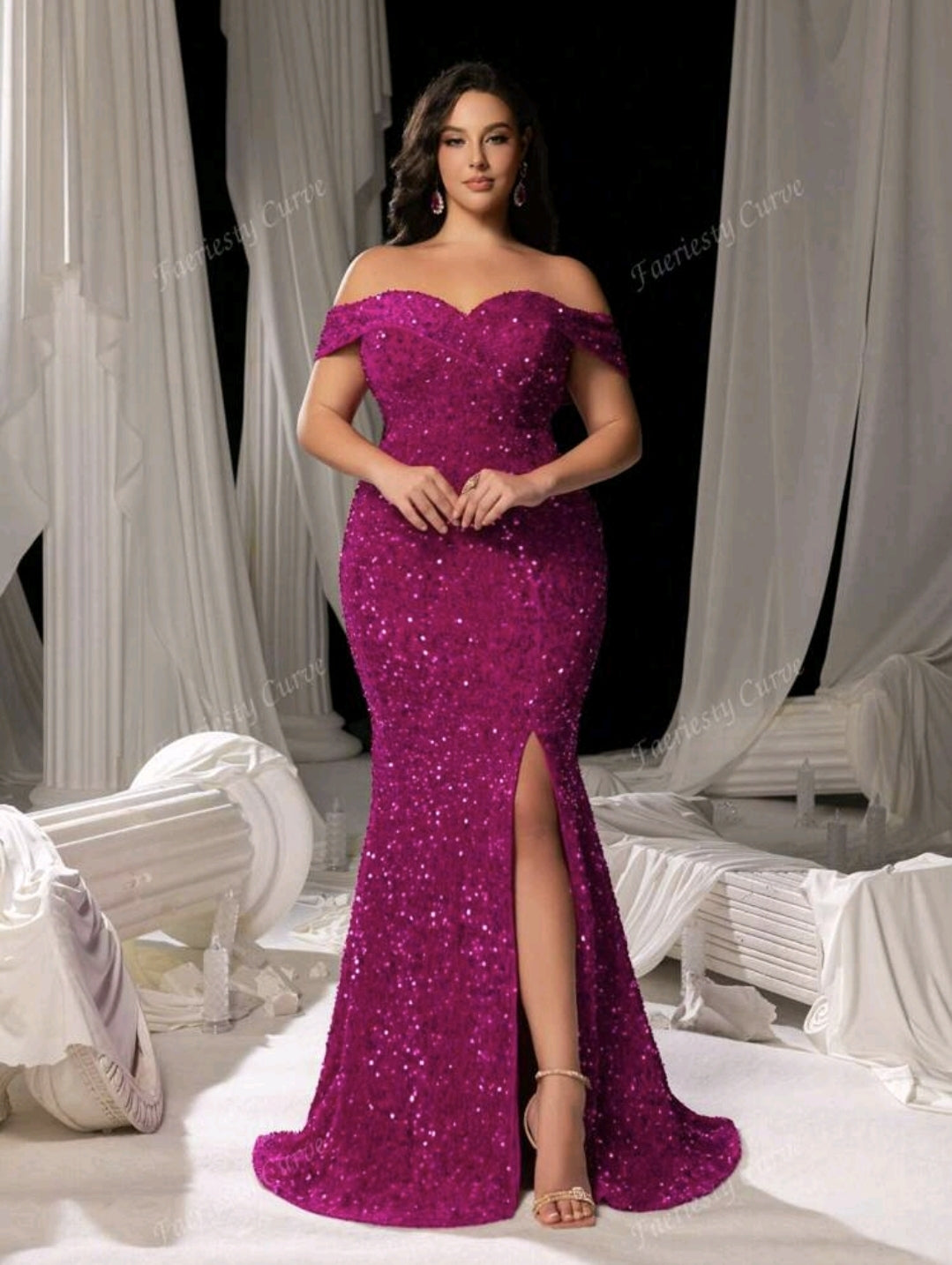 فستان سهرة حورية البحر الأنيق بدون أكتاف والمطرز بالترتر بفتحة جانبية