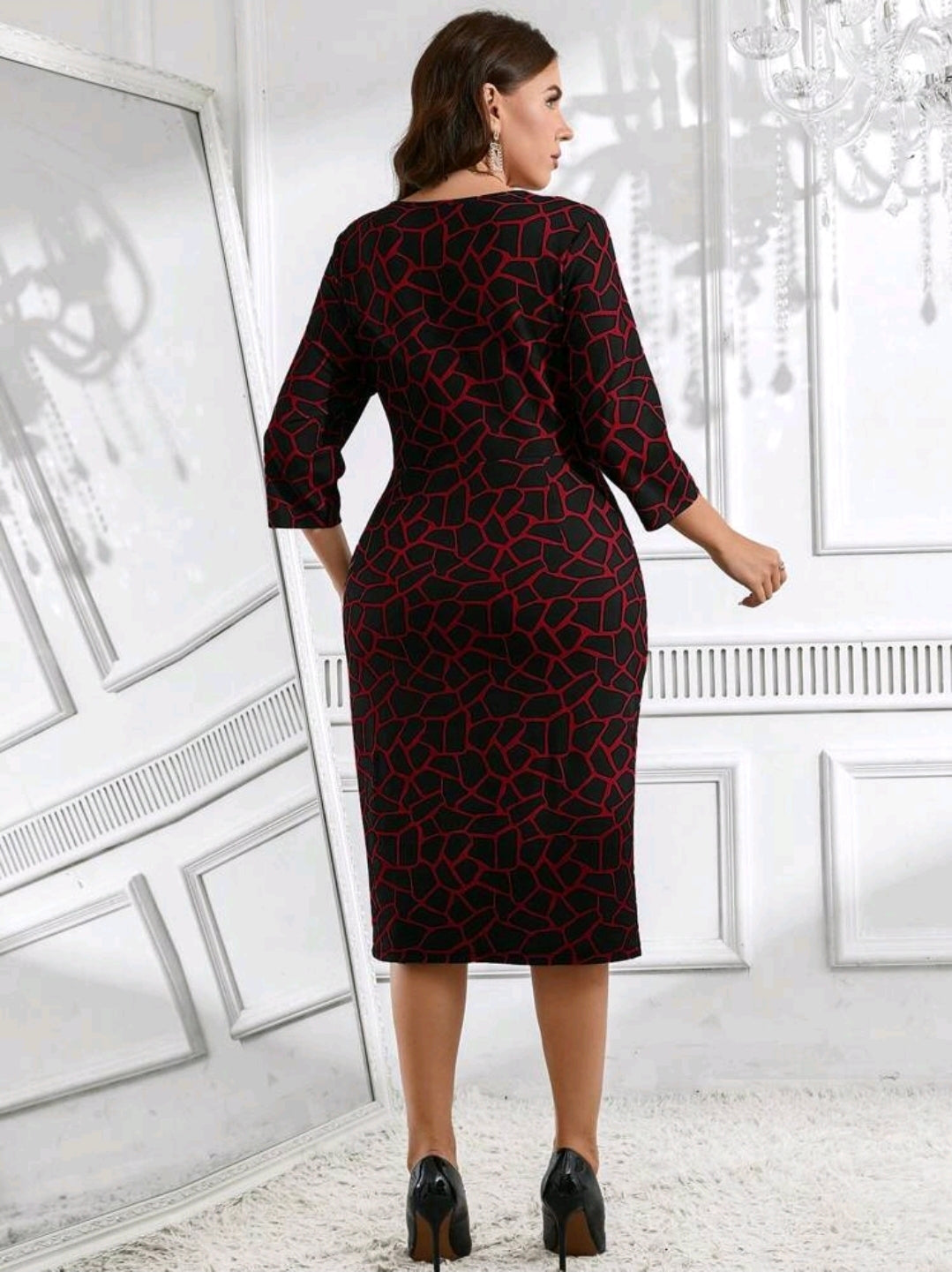 فستان سهرة أنيق بفتحة رقبة دائرية من للنساء بمقاس كبير