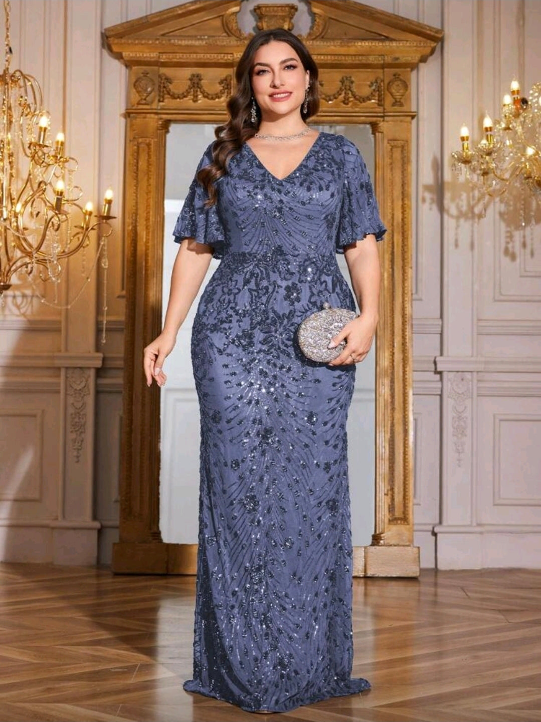 فستان عالي الجودة، أنيق ومرن، بقصة ضيقة، وفتحة رقبة على شكل حرف V، بمقاس كبير، مناسب للسهرات، وحفلات الزفاف
