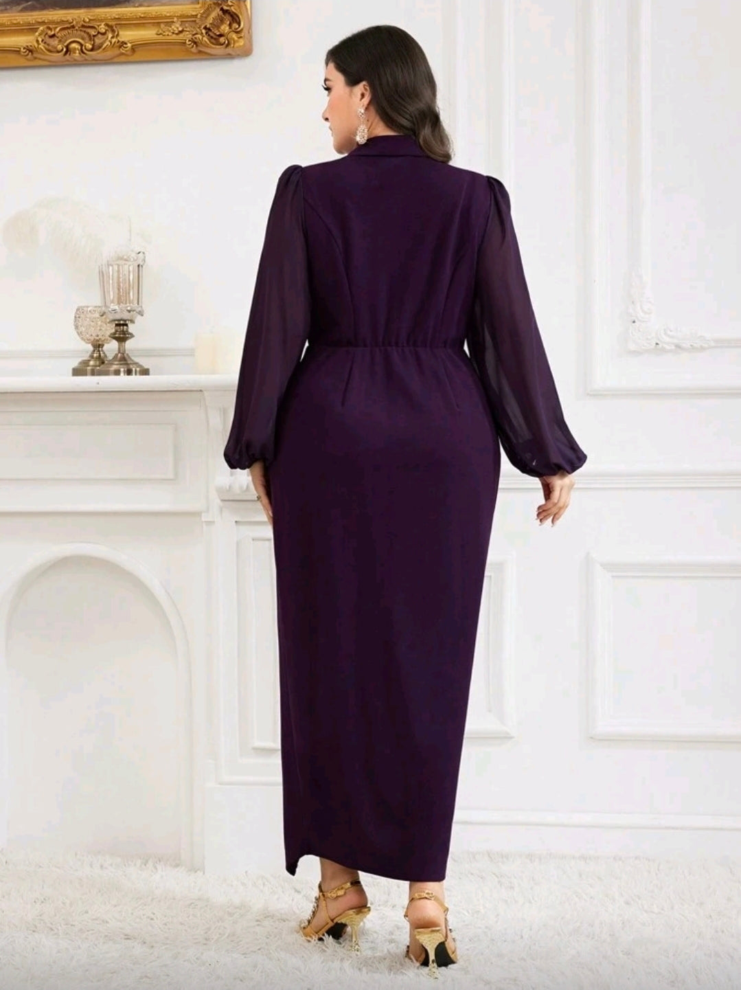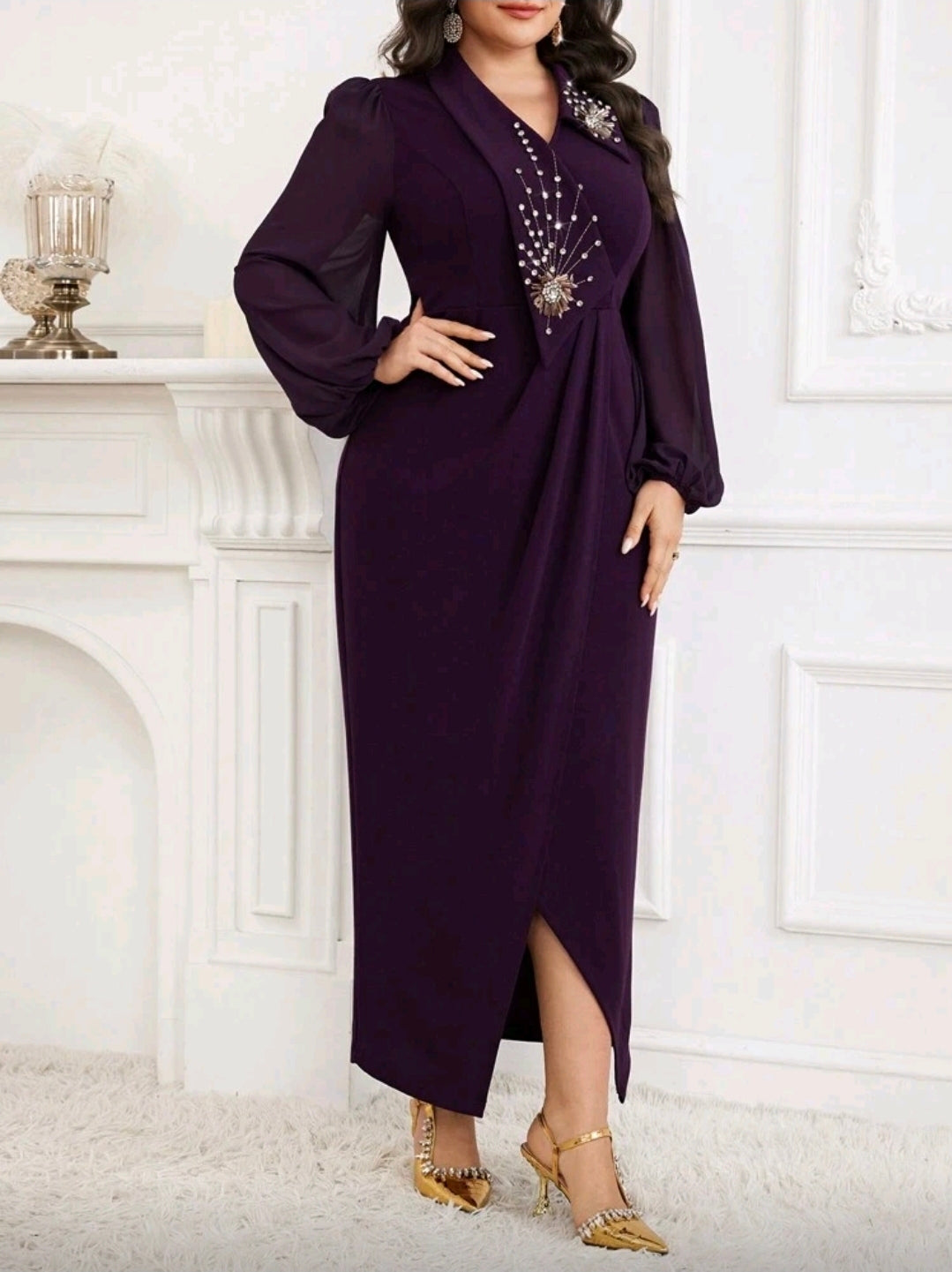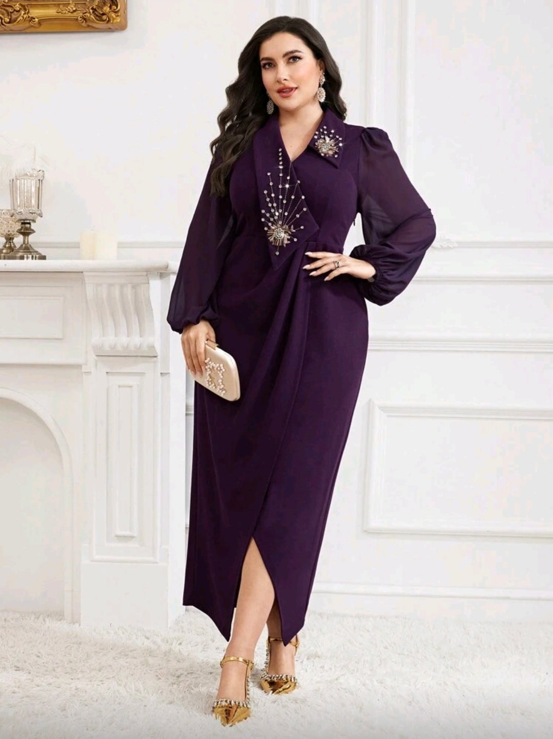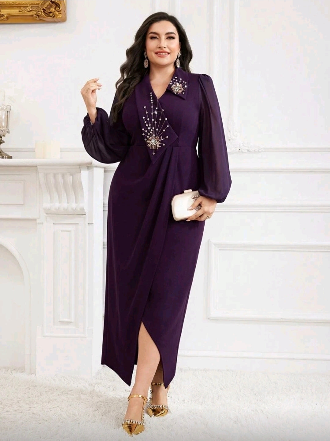 فستان بنفسجي أنيق مزين بالكريستال بمقاسات كبيرة