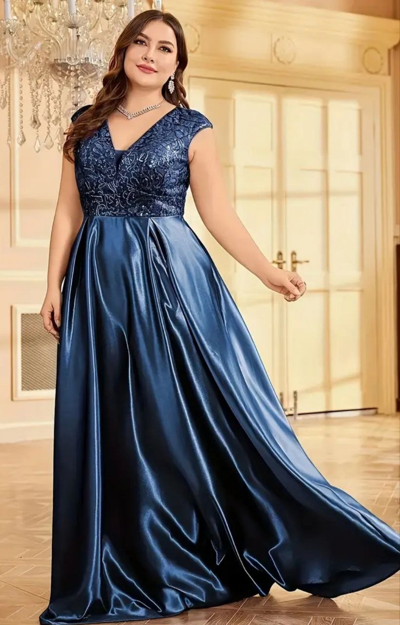 فستان ارزق فاخر بدون أكمام مزير بالترتر فالصدر