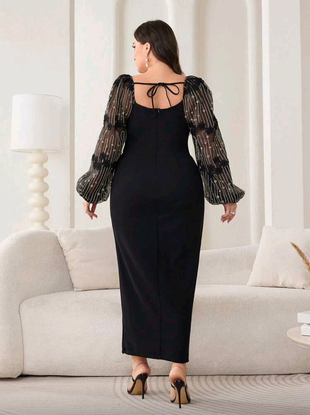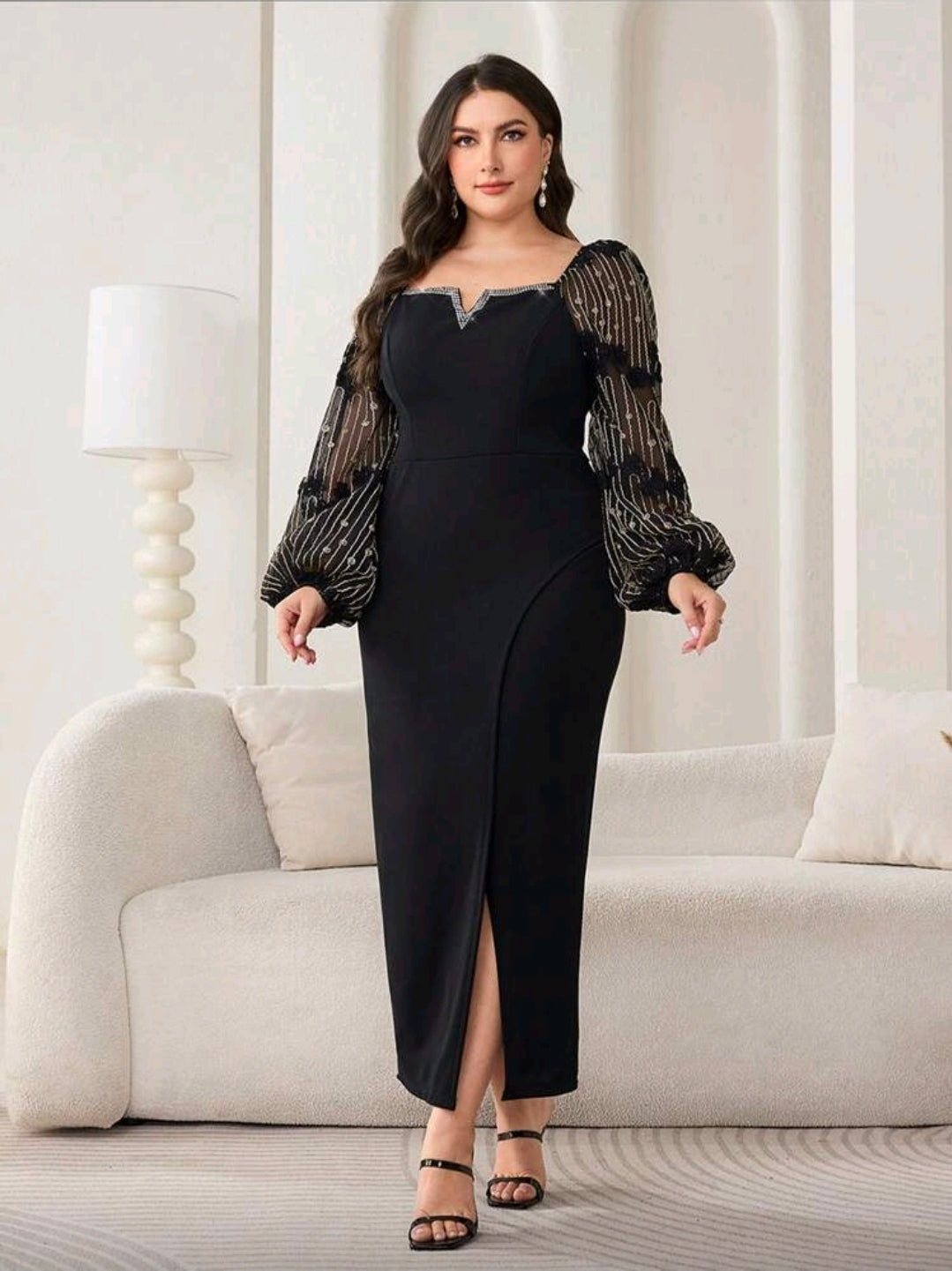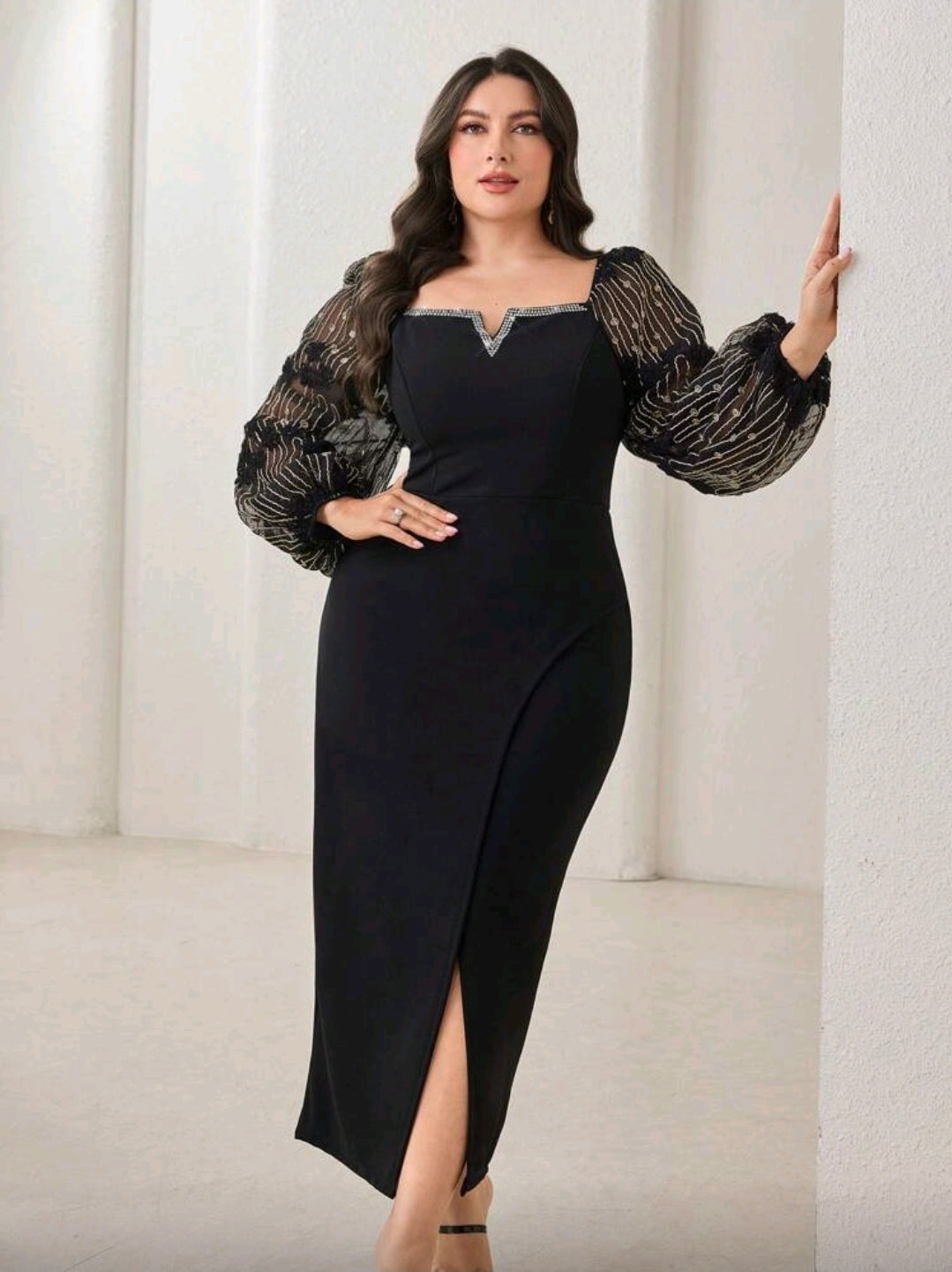 فستان ميدي بأكمام طويلة من الدنتال ومقاس كبير