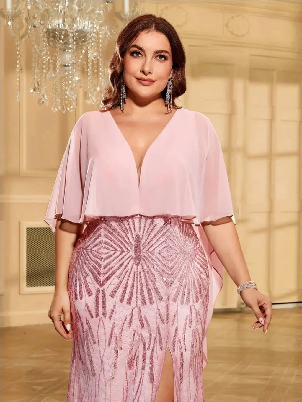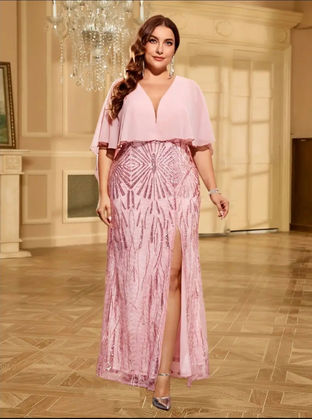 فستان بأكمام فراشة مزين بالترتر، مقاس كبير